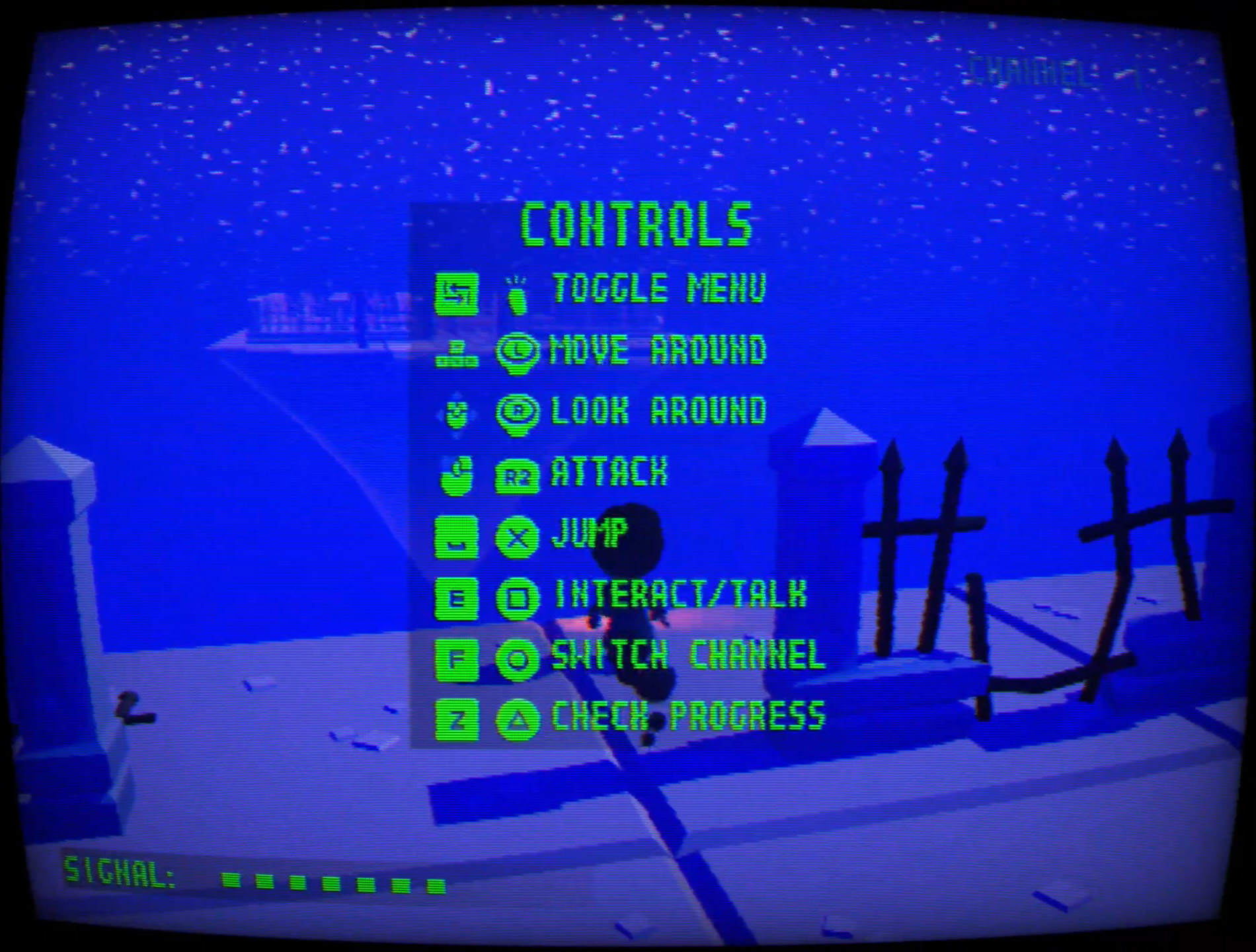 Navigate two versions of the same world (using your TV remote to switch channels!) to collect all three of Rattle's bone fragments and return them to him (Rattle is the scarecrow at the start of the level).